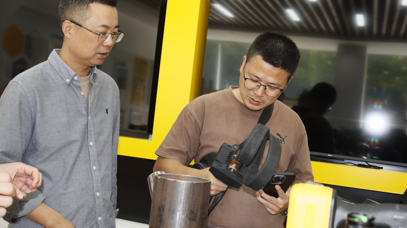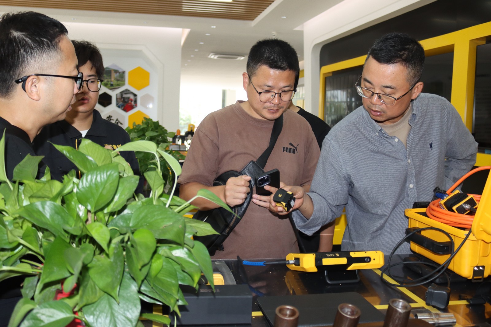 所有工作完成以后,湖州市特種設備檢測院參觀我公司展廳,對我公司在磁粉探傷儀及交流電磁場(ACFM)檢測儀和磁粉探傷機器人等產品有了更深的了解,并對我司在定制化研發方面給予高度評價。